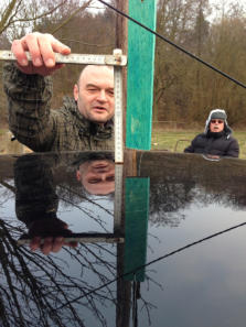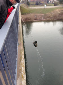 das Wasserschöpfen mit Eimer aus der Werra. Da der Eimer